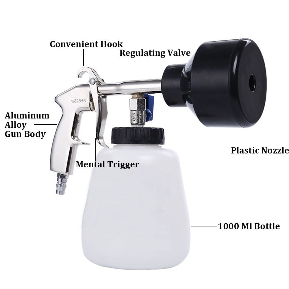 Tornador ko'pikli tabancasi turli xil ko'pikli tozalash suyuqliklarini purkashi mumkin, ular avtomobil tuklari va terisini, dvigatel yuzasini, shinalar yuzasini, avtokorpusni va avtomobil asboblar panelini tozalash uchun ishlatiladi.
